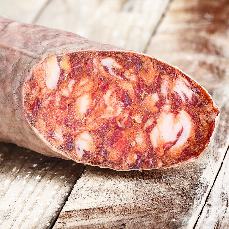 De exquisito sabor, con un aroma intenso gracias a las especias naturales en el que destaca con suavidad el pimentón empleado en su elaboración.